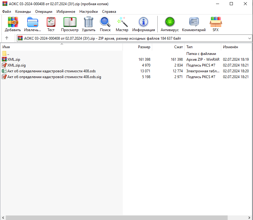 Файл архива АКТа в формате zip является официальным подтверждением об определении кадастровой стоимости по объекту недвижимости.