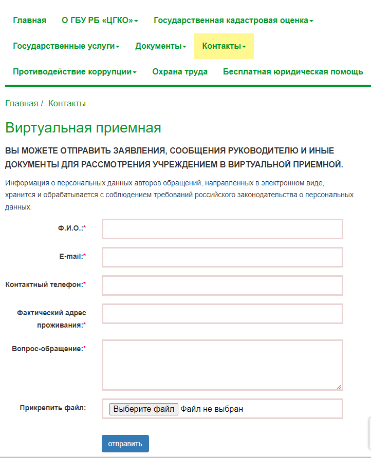 Виртуальная приемная ГБУ РБ "Центр государственной кадастровой оценки"