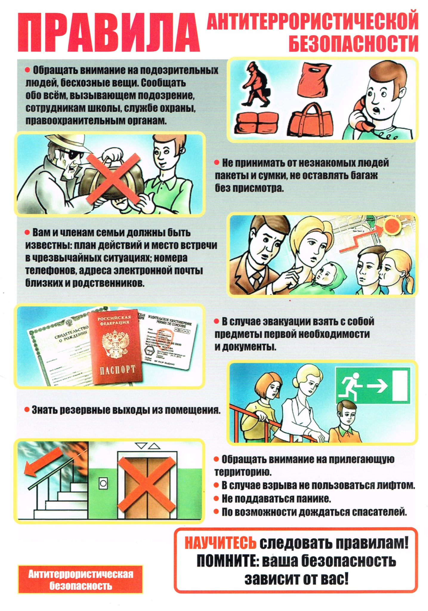 Обращайте внимание на подозрительных людей, предметы, на любые подозрительные мелочи. Сообщайте обо всем подозрительном сотрудникам правоохранительных органов.