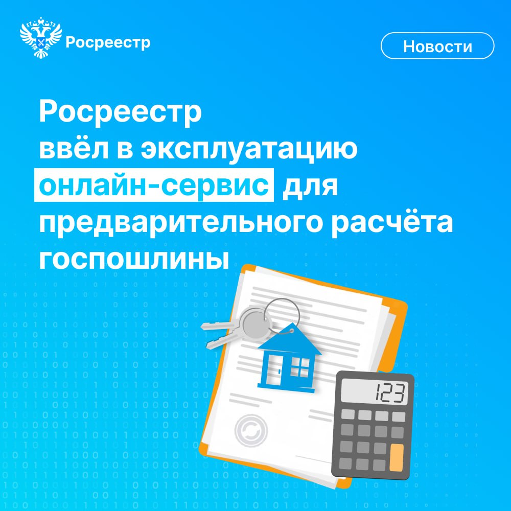 На сайте Росреестра (https://rosreestr.gov.ru/press/archive/rosreestr-vvyel-v-ekspluatatsiyu-servis-kalkulyator-gosposhliny/) появился новый сервис «Калькулятор госпошлины» (https://rosreestr.gov.ru/eservices/services/calculator-state-duty/), который в онлайн-режиме поможет предварительно рассчитать размер пошлины за проведение кадастрового учёта и регистрации прав на объекты недвижимости.