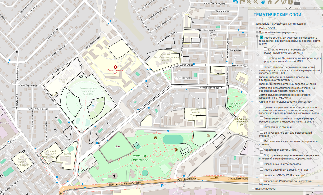 В настоящее время успешно реализована интеграция единой базы данных государственного и муниципального имущества с Геопорталом Республики Бурятия http://geo.gbucitrb.ru// . Портал дополнен слоями - реестр земельных участков (объектов недвижимого имущества), находящихся в государственной и муниципальной собственности.